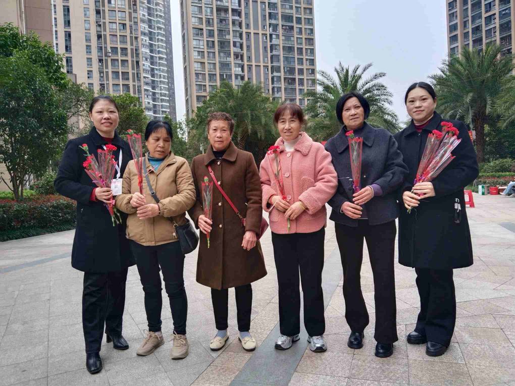 3月8日,物业工作人员为女性同胞送上娇艳的康乃馨,一束束盛放的鲜花、一句句温情的祝福,传递着对女性同胞的尊重与关爱,也寄托着对姐妹们健康美丽、幸福顺遂的美好祝愿。